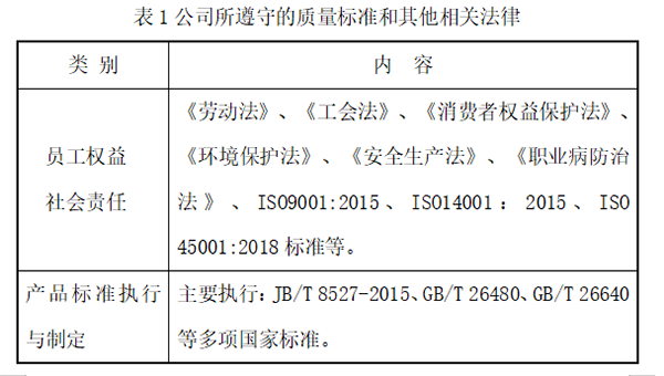公司通過收集法律法規及其它標準、要求,制定內部相關標準,使產品達到國家法律法規和國家、行業標準的要求(部分產品指標高于行業標準要求),從產品技術上踐行社會責任。同時,公司制定了不合格品管理制度及質量異常獎懲管理制度等,對產品質量問題進行控制,對相應的責任人進行一定的懲罰或者獎勵,遵循對質量事故不放過原則。
